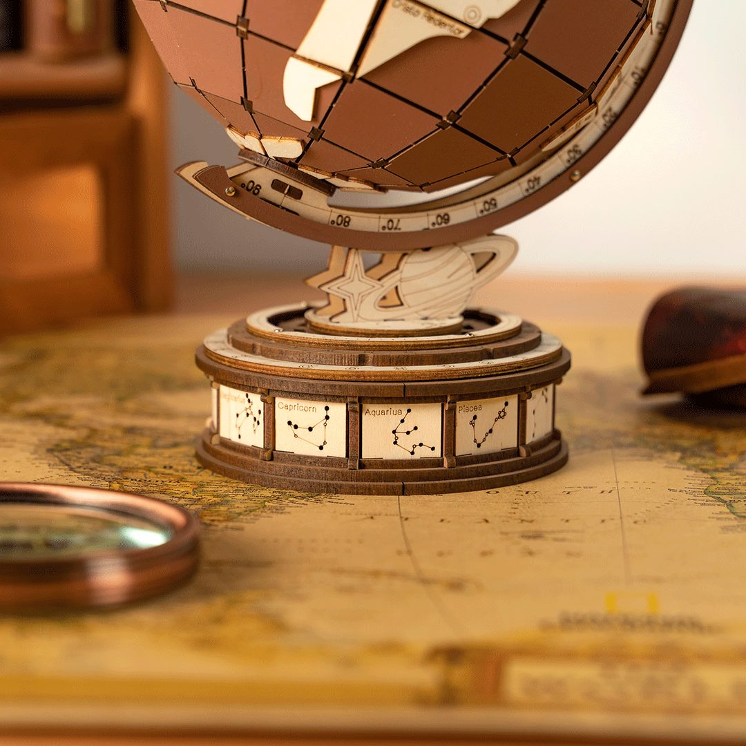 A különleges földgömb művészi és dekoratív vonzerőt biztosít otthonának vagy irodájának bármely részén.